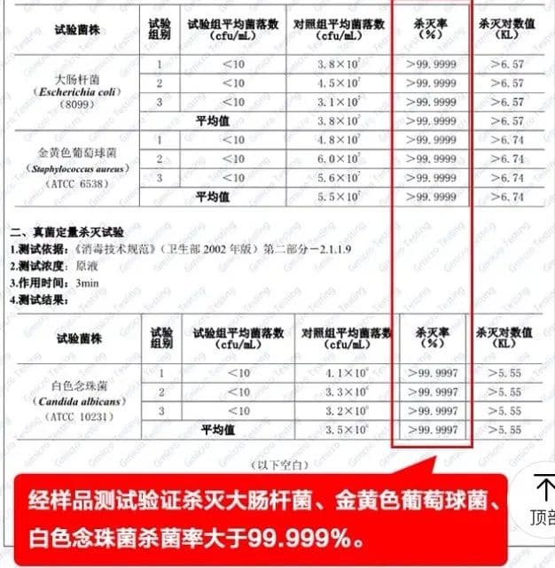 随便点开这些宣称抑菌能力达到90%的产品详情界面,你会发现,大多抑菌产品只针对金黄色葡萄球菌、大肠杆菌和白色念珠菌的抗菌率出具了检测报告。