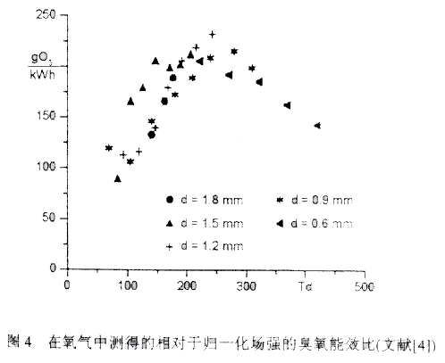 为了改进臭氧发生的性能,微放电中的场强应尽可能接近试验找出的最佳值。当主要大电荷转移期间的场强分布可被修整到某一范围。然而,还必须考虑到化学反应既产生又破坏臭氧,就此而论温度应尽可能低,也就是说发生器的冷却条件是关键。