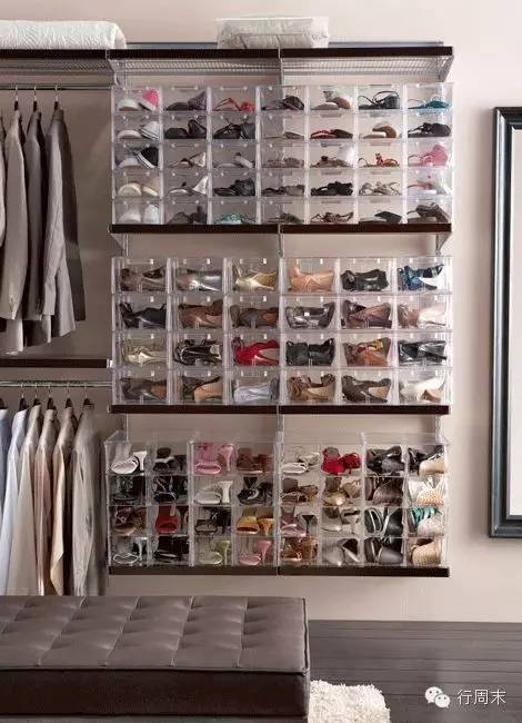 ▲如果家里有足够的空间,不妨准备几条隔板,再将换季的鞋子放在透明的鞋盒里(好像宜家有卖),感觉很干净很整齐,而且将鞋子放在鞋盒里面收纳起来,可以很好的保护到你心爱的鞋子。