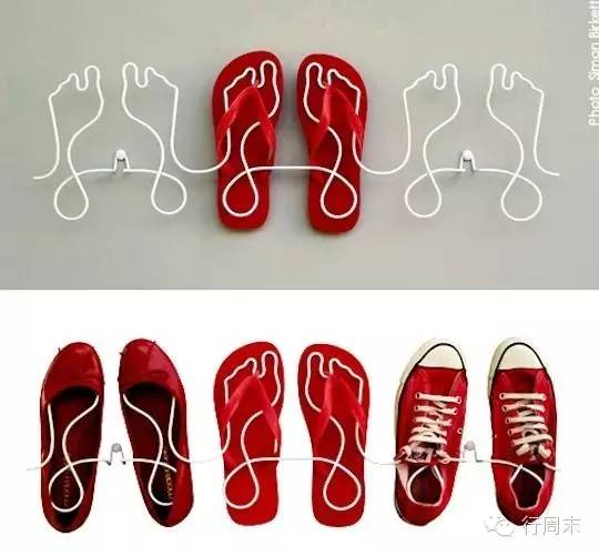 ▲懂生活的女人平日小鸟依人,关键时候立刻变身女汉子,改造衣架也不在话下,看!凉鞋和拖鞋的问题也都解决了吧?