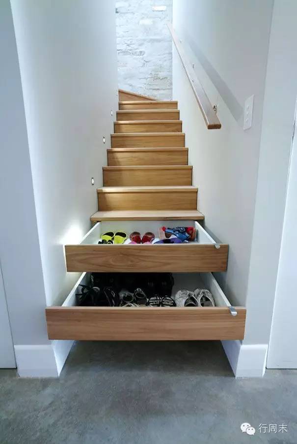 ▲楼梯间太矮,不便穿梭,不如做个可以抽拉的鞋柜。