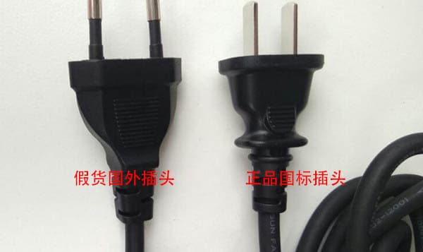电源线的插头:正品是符合国内标准的两插扁头。假货通常是国外标准的两插圆头,或者三插大头。