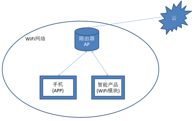 由上图可见,APP和智能产品之间并没有直接的交互,而是夹杂了”云“端(当然,我们也可以直接走局域网)。