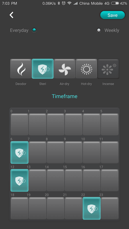 Auto:Footies run schedules from cloud, Footies will adjust according to the local weather. For example, in rain season, footies will run more Hot-Dry tasks to get rid of wet.