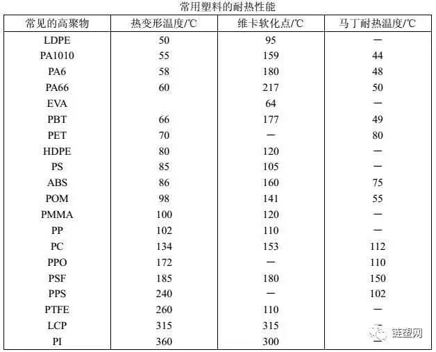 ▲常用塑料的耐热性能表